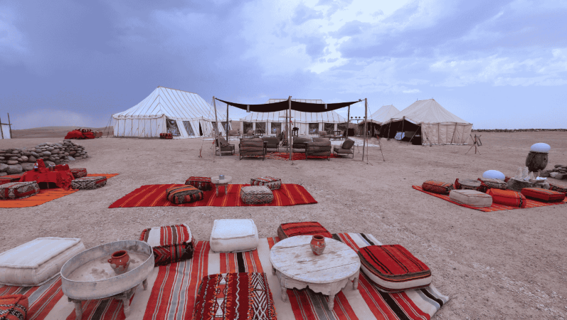 Embark on a captivating journey to the Agafay Desert (appx. 6 hours drive) where Morocco's diverse landscapes unfold before your eyes. Upon arrival at your luxurious desert camp, you'll be greeted with traditional Moroccan hospitality.