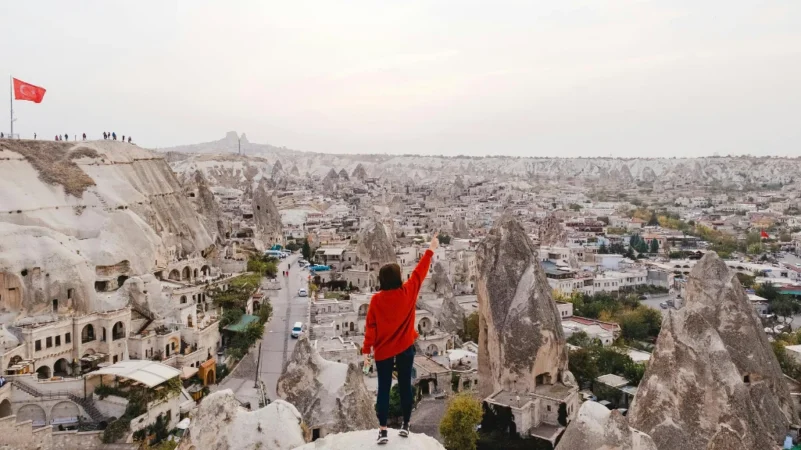 You will be picked up from your hotel at around 09:00-09:30 and start the day visiting Devrent Valley, also known as "Imagination Valley", this is the most surreal-looking landscape. Your next stop will be Pashabagi called also the Monks Valley because Christian hermits chose to locate hermit cells and churches in these three-headed pinnacles symbolic of the Holy Trinity, it´s possible to see all the stages in the formation of fairy chimneys at this spot. Proceed to Avanos (Vanessa) the pottery center of Cappadocia, this village is set on the banks of the Kizilirmak/Red River. The river gets its name from the red clay it deposits. You can watch the potters at work using kick wheels, the technique which has remained unchanged for generations. Lunch. Continue to the Goreme Open Air Museum. The world´s most important Byzantine cave churches are found in these once remote valleys where monks and nuns pursued monastic life from the 3rd century on. Here you can see the best-preserved Byzantine cave wall paintings and frescos from the Iconoclastic period through to the end of Seljuk rule. Icons with scenes from the Old Testament and the New Testament above portraits of Church Fathers and saints depict the structure of the Byzantine universe. Panoramic viewpoint Esentepe. With a spectacular view over Goreme from Esentepe see the complete view of Goreme valley and Goreme village: fairy chimneys, rock formations, and cave houses.