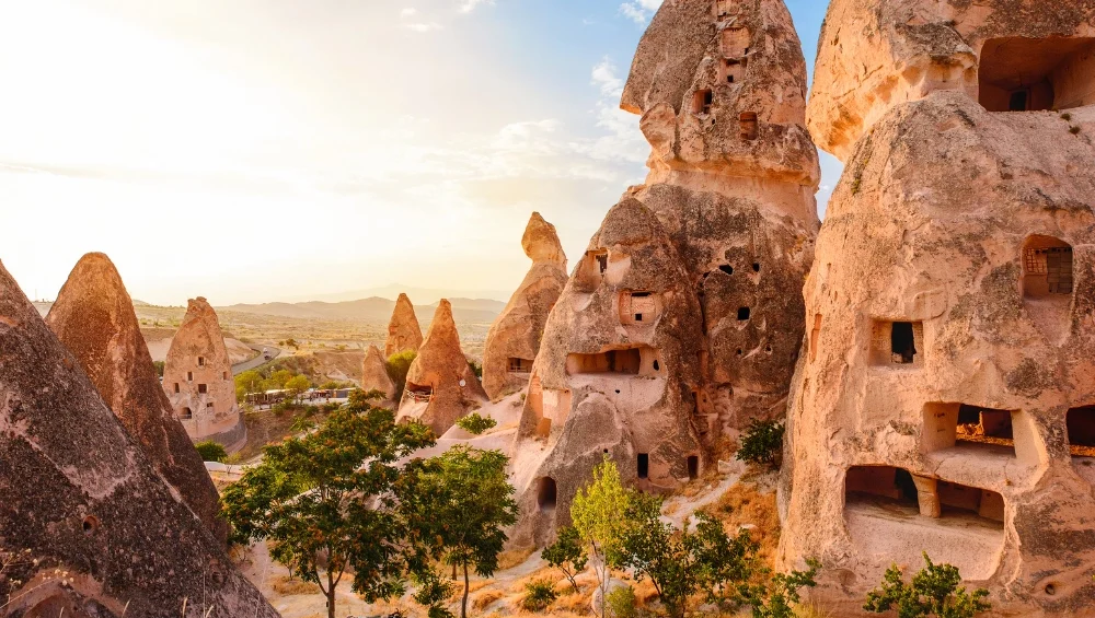 You will be picked up from your hotel at around 09:00-09:30 and start the day visiting Devrent Valley, also known as “Imagination Valley”, this is the most surreal-looking landscape. Your next stop will be Pashabagi called also the Monks Valley because Christian hermits chose to locate hermit cells and churches in these three-headed pinnacles symbolic of the Holy Trinity, it´s possible to see all the stages in the formation of fairy chimneys at this spot. Proceed to Avanos (Vanessa) the pottery center of Cappadocia, this village is set on the banks of the Kizilirmak/Red River. The river gets its name from the red clay it deposits. You can watch the potters at work using kick wheels, the technique which has remained unchanged for generations. Lunch. Continue to the Goreme Open Air Museum. The world´s most important Byzantine cave churches are found in these once remote valleys where monks and nuns pursued monastic life from the 3rd century on. Here you can see the best-preserved Byzantine cave wall paintings and frescos from the Iconoclastic period through to the end of Seljuk rule. Icons with scenes from the Old Testament and the New Testament above portraits of Church Fathers and saints depict the structure of the Byzantine universe. Panoramic viewpoint Esentepe. With a spectacular view over Goreme from Esentepe see the complete view of Goreme valley and Goreme village: fairy chimneys, rock formations, and cave houses.